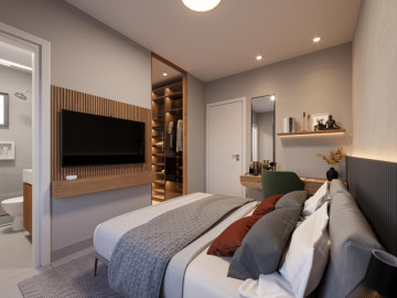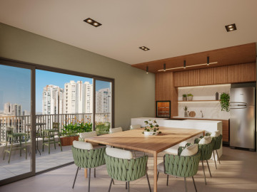 Empreendimento conta com estrutura completa de área de lazer, vaga coberta, portaria 24h, controle de acesso facial QR Code.