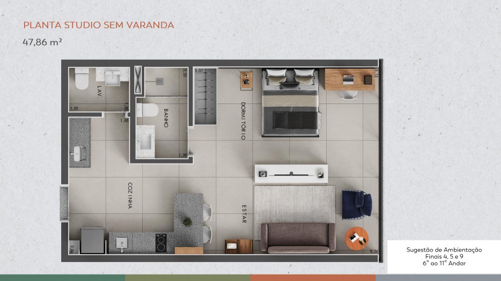 • Área Total: 47,86 m² (R$ 9.454/m²)
