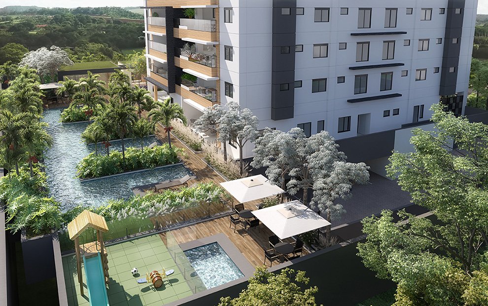Localizado na belíssima Vila do Golf, em frente ao Shopping Iguatemi, o VILLA GUAIMBÉ é um projeto singular de beleza contemporânea, sofisticação e um paisagismo tropical inédito.