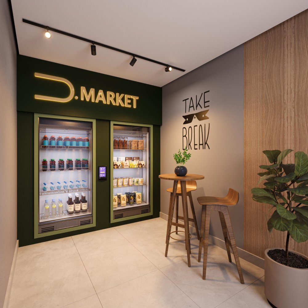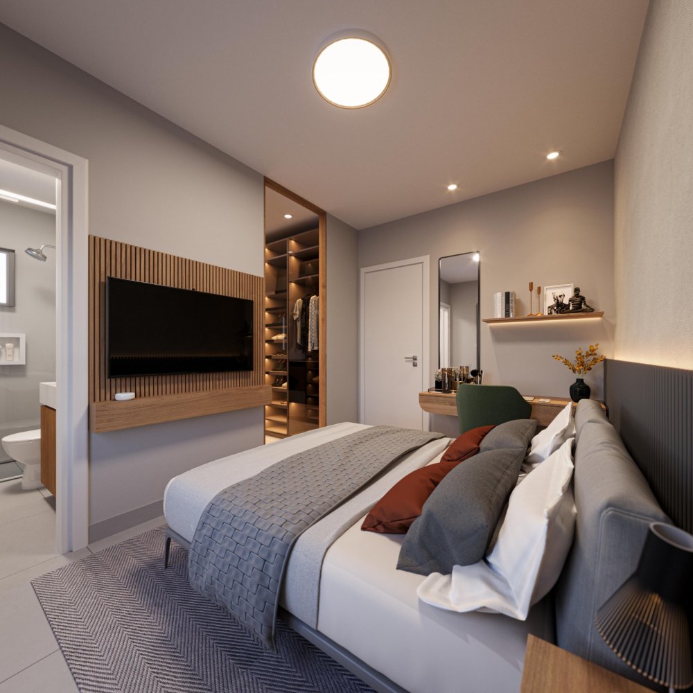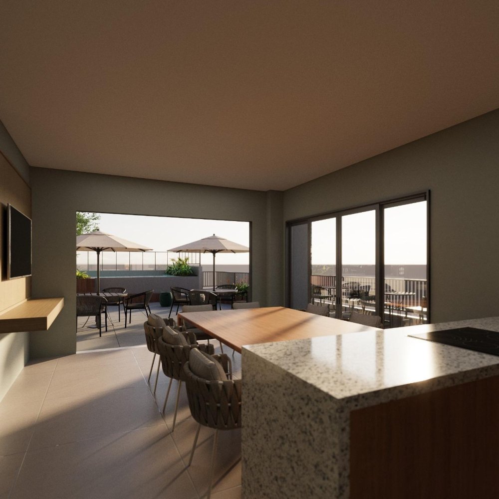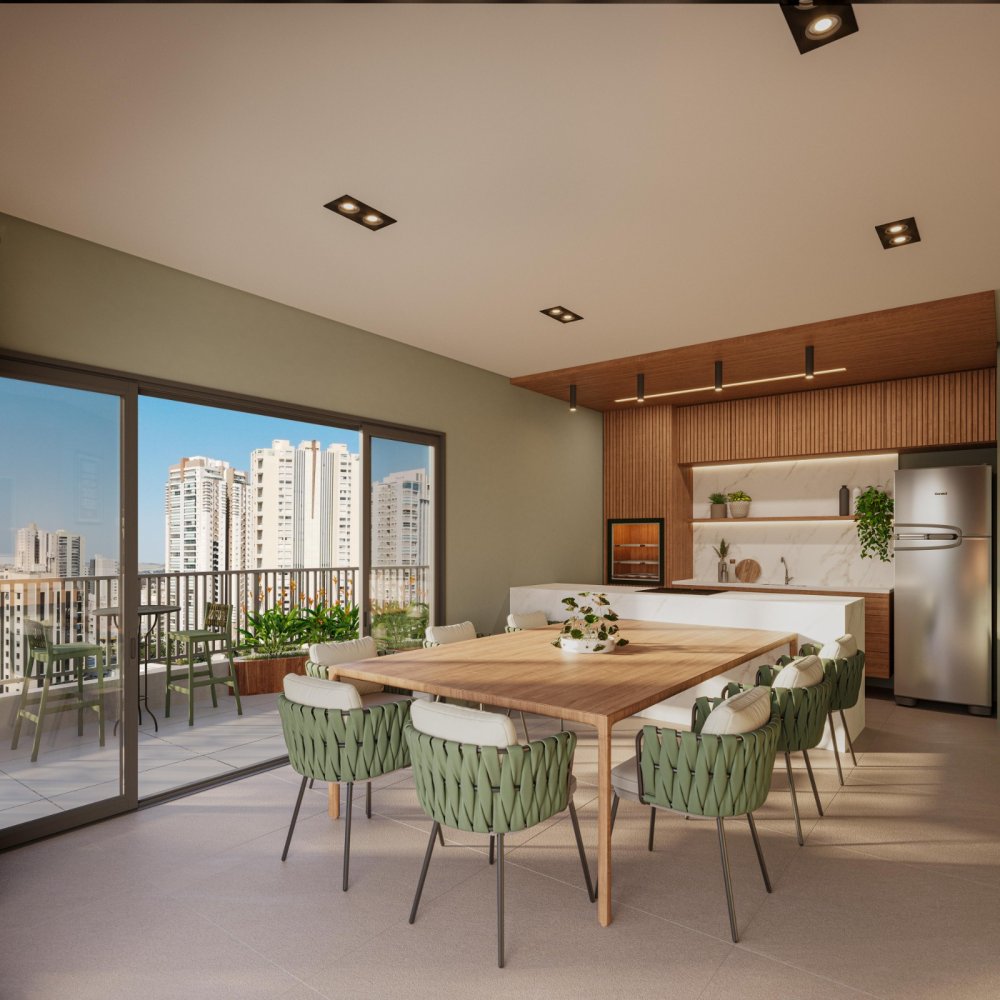 Empreendimento conta com estrutura completa de área de lazer, vaga coberta, portaria 24h, controle de acesso facial QR Code.