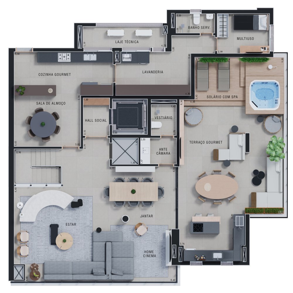 Cobertura Duplex no Cidade de Zurique, com todos os requintes de luxo em cada m². Valorizado pela sua localização privilegiada e com todos os benefícios de morar em contato com a natureza, o projeto inclui ambientes específicos para recepção de delivery, garagem exclusiva para bicicletas com setor de manutenção, espaço pet e área familiar com piscina para convidados