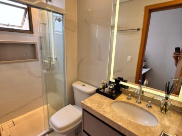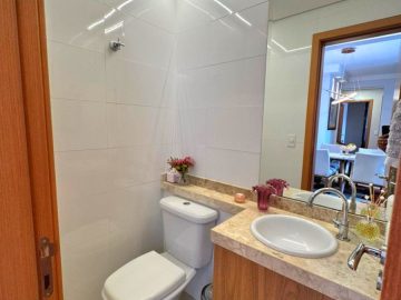 Mármores nos banheiros e granito na cozinha e na varanda gourmet